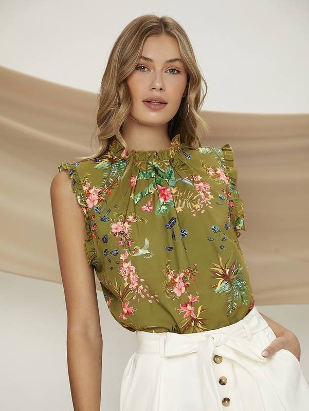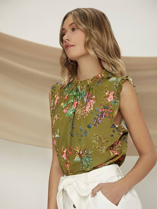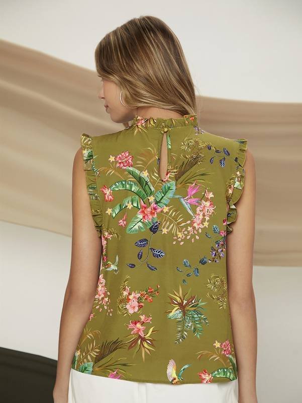Be the first to review “Bird & Tropical Print Frill Trim Top” Cancel reply