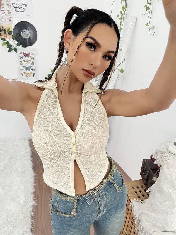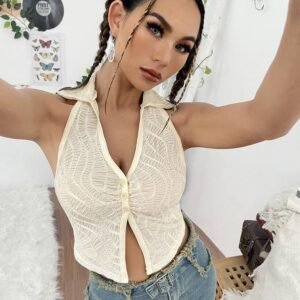 Be the first to review “Collared Open Back Buttoned Halter Top” Cancel reply
