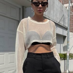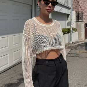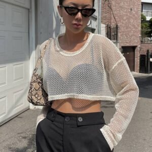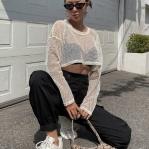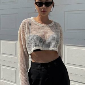 Be the first to review “DAZY Open Knit Drop Shoulder Crop Sheer Top Without Bra” Cancel reply