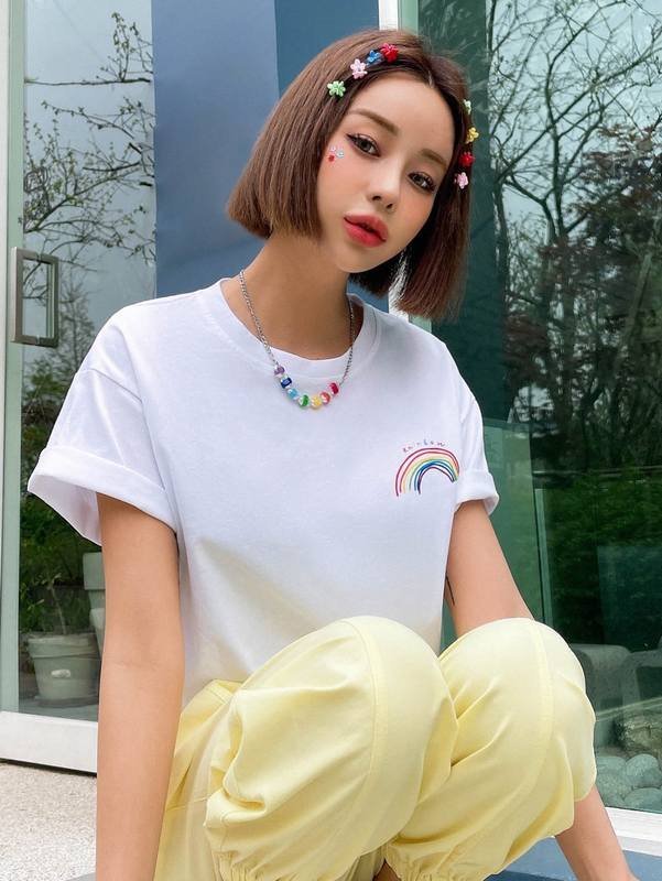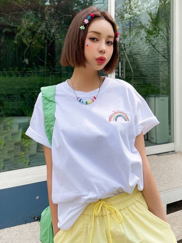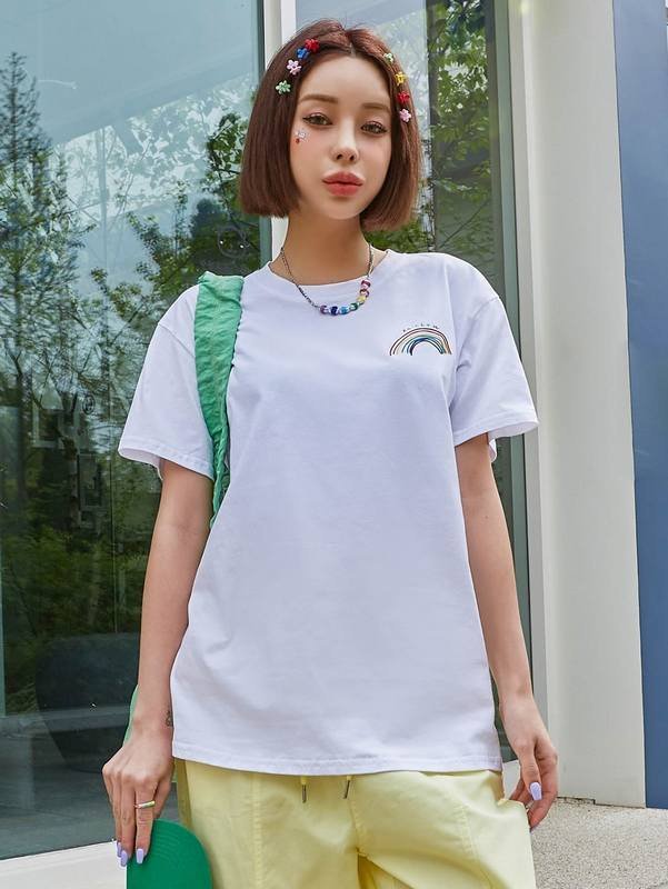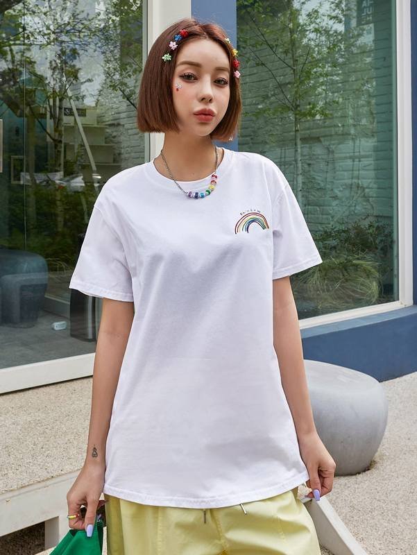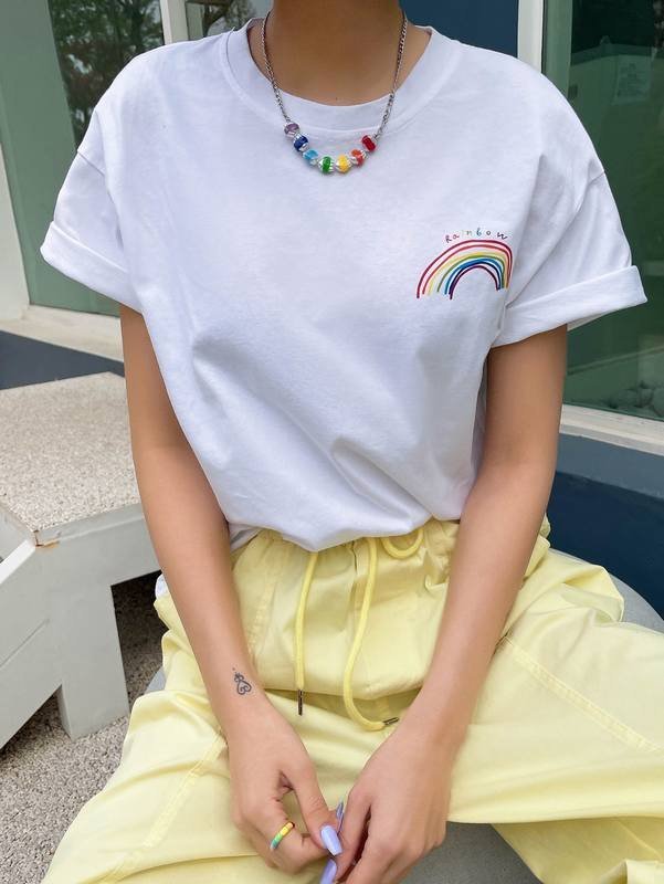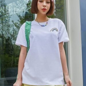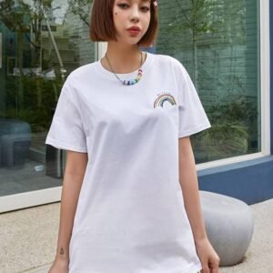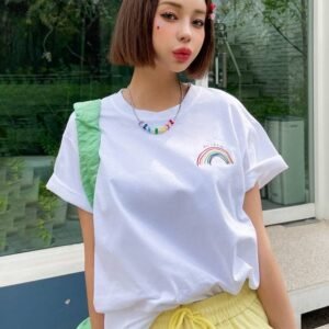 Be the first to review “DAZY Rainbow Striped & Letter Drop Shoulder Tee” Cancel reply