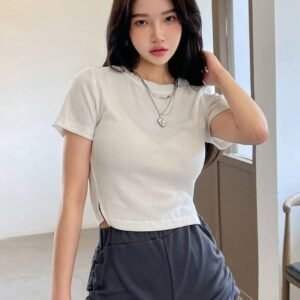 Be the first to review “DAZY Rib-knit Split Hem Crop Tee” Cancel reply