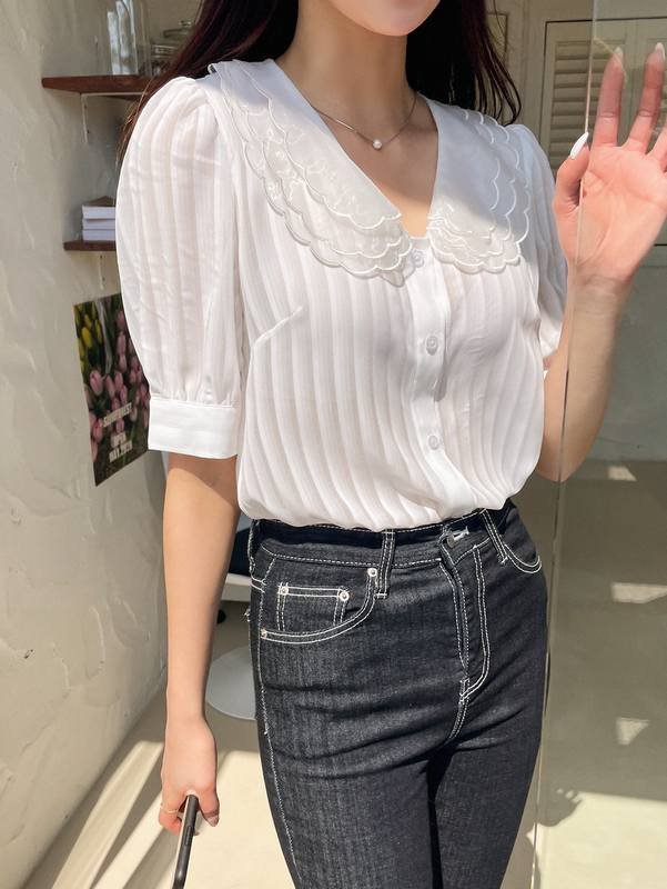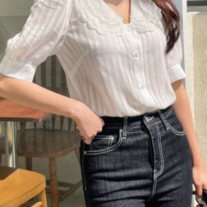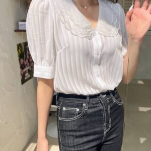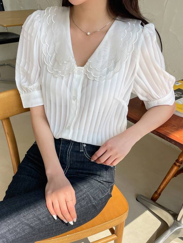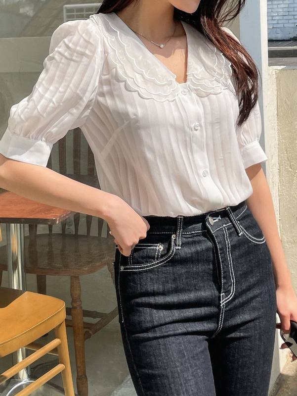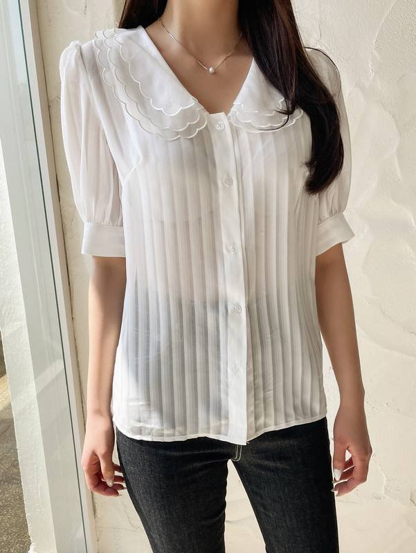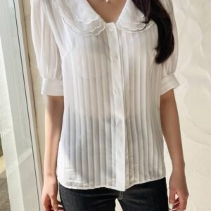 Be the first to review “DAZY Scallop Trim Mesh-doll Neck Puff Sleeve Blouse” Cancel reply