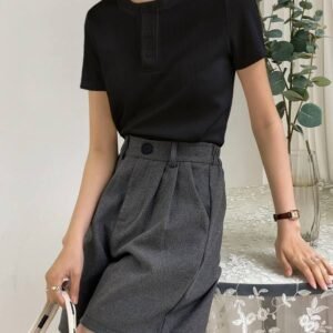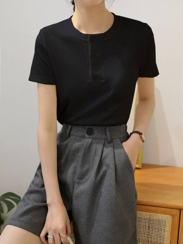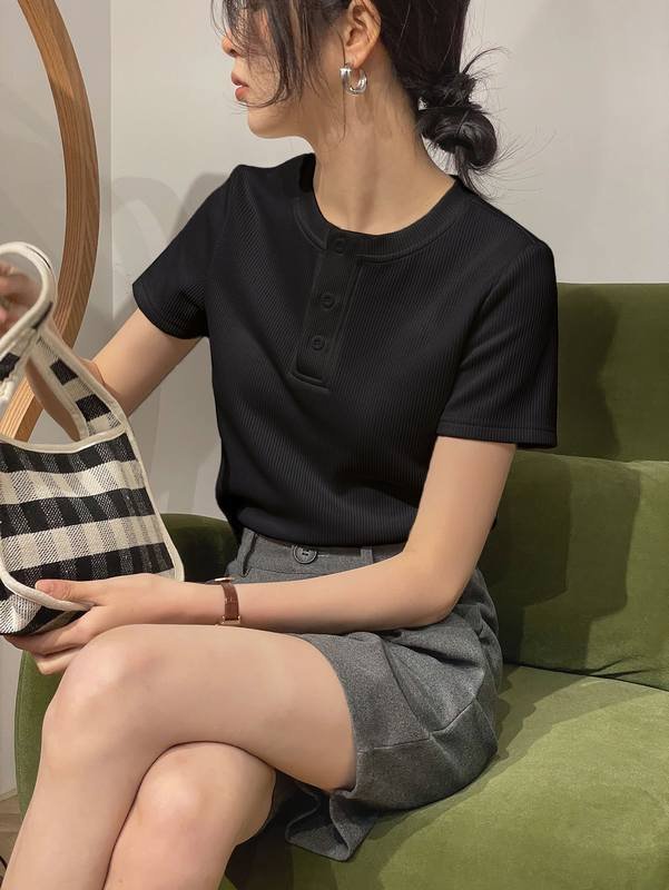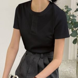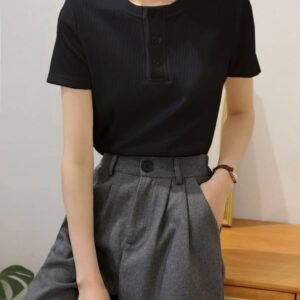 Be the first to review “DAZY Solid Button Front Rib Knit Tee” Cancel reply