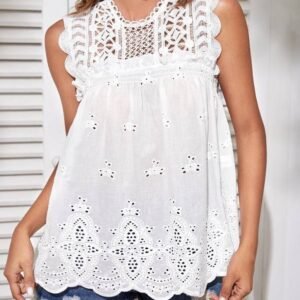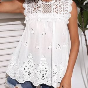 Be the first to review “Guipure Lace Panel Frill Trim Shirred Schiffy Blouse” Cancel reply