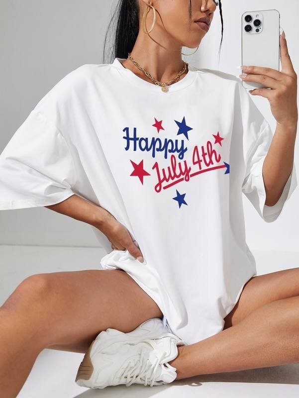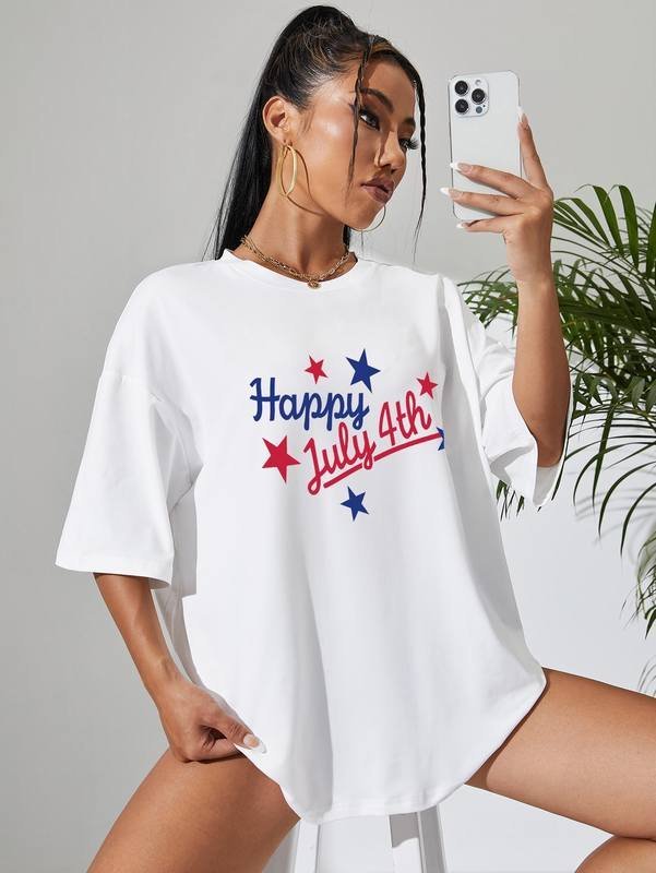 Independence Day Print Drop Shoulder Oversized Tee