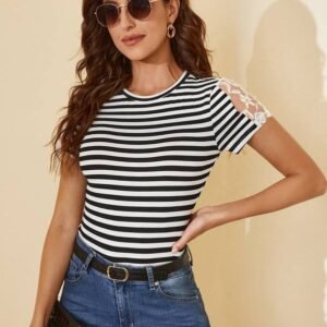 Be the first to review “Lace Insert Striped Top” Cancel reply