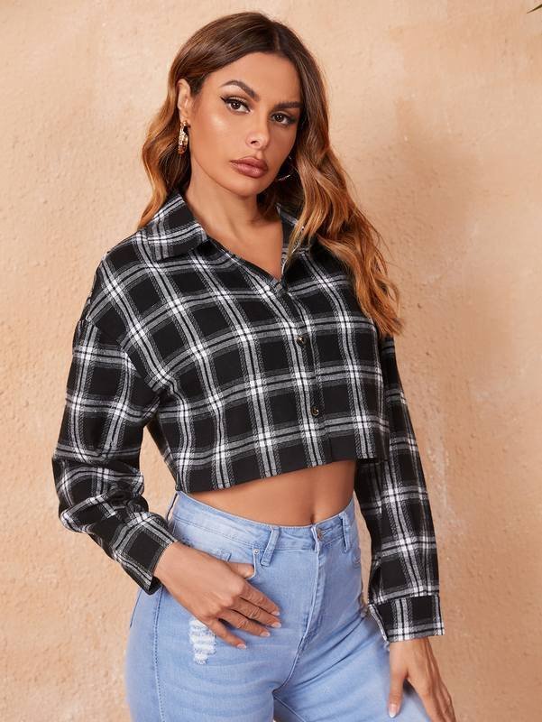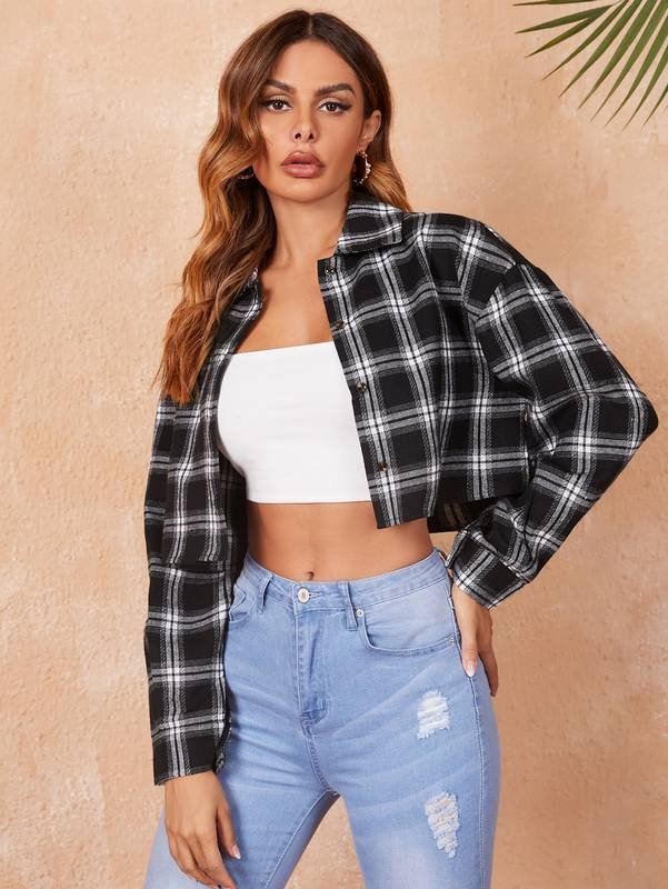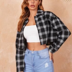 Be the first to review “Plaid Print Drop Shoulder Crop Shirt” Cancel reply